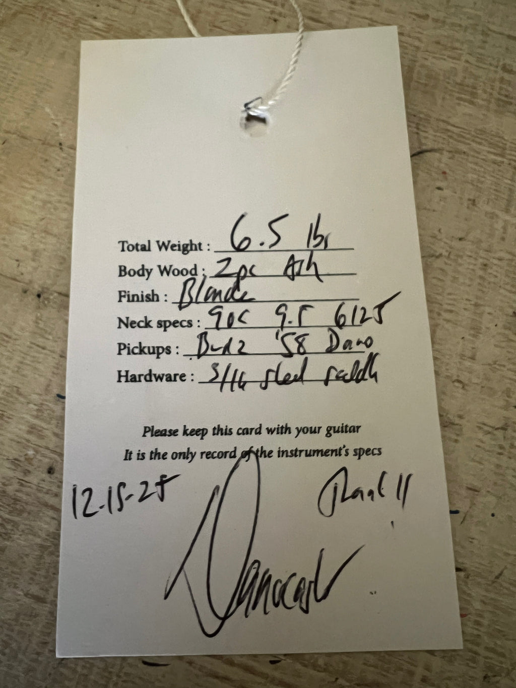 Neck Specs: .90C / 6125's / 9.5"