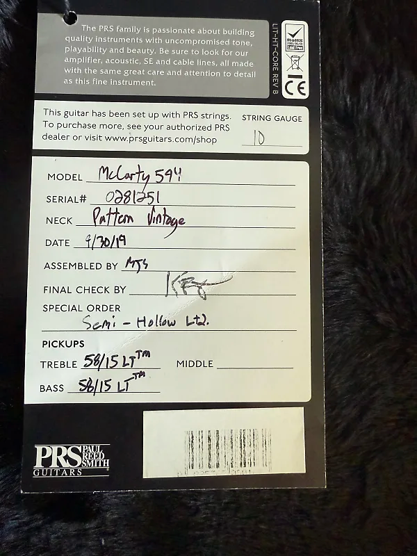 PRS McCarty 594 Semi-Hollow LTD Brazilian Rosewood Neck 10-Top