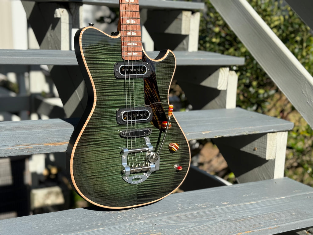 Inspired by San Diego's blend of surf, skate, auto and music cultures, the A-Type re-imagines electric guitar design into a sound and feel all its own. The trussed, slim hollow body is remarkably lightweight and uniquely voiced to combine resonance, sustain and feedback suppression. An asymmetrical fretboard radius makes playing and bending strings effortless and produces a more consistent tonal character. A new single-coil pickup design blends warmth and fidelity (FF42) with a brighter and punchier pickup (PF42) option also available. The proprietary CamTail trem/vibrato system keeps strings in tune with each other on dives and bends. Every design feature works to reveal a playing experience unlike any other — one that frees you up to sound more like you.