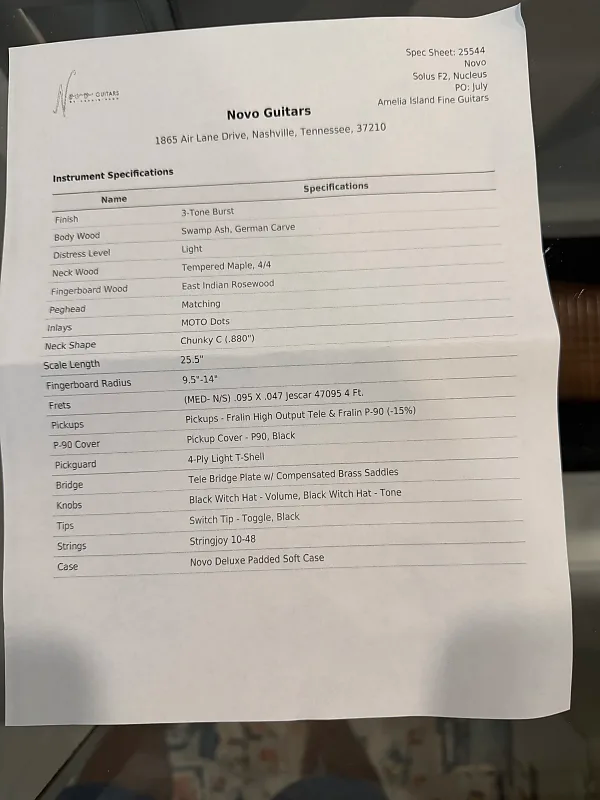 Novo Guitars, founded by master luthier Dennis Fano, blends vintage-inspired designs and modern craftsmanship, creating instruments that feel both familiar and fresh. Hand-built in Nashville, each guitar features unique offset shapes, the highest quality components, and a meticulously aged nitrocellulose finish that gives that distinctively broken-in feel. With bold aesthetics and impeccable playability, Novo guitars stand out as some of the most exciting boutique instruments on the market today.